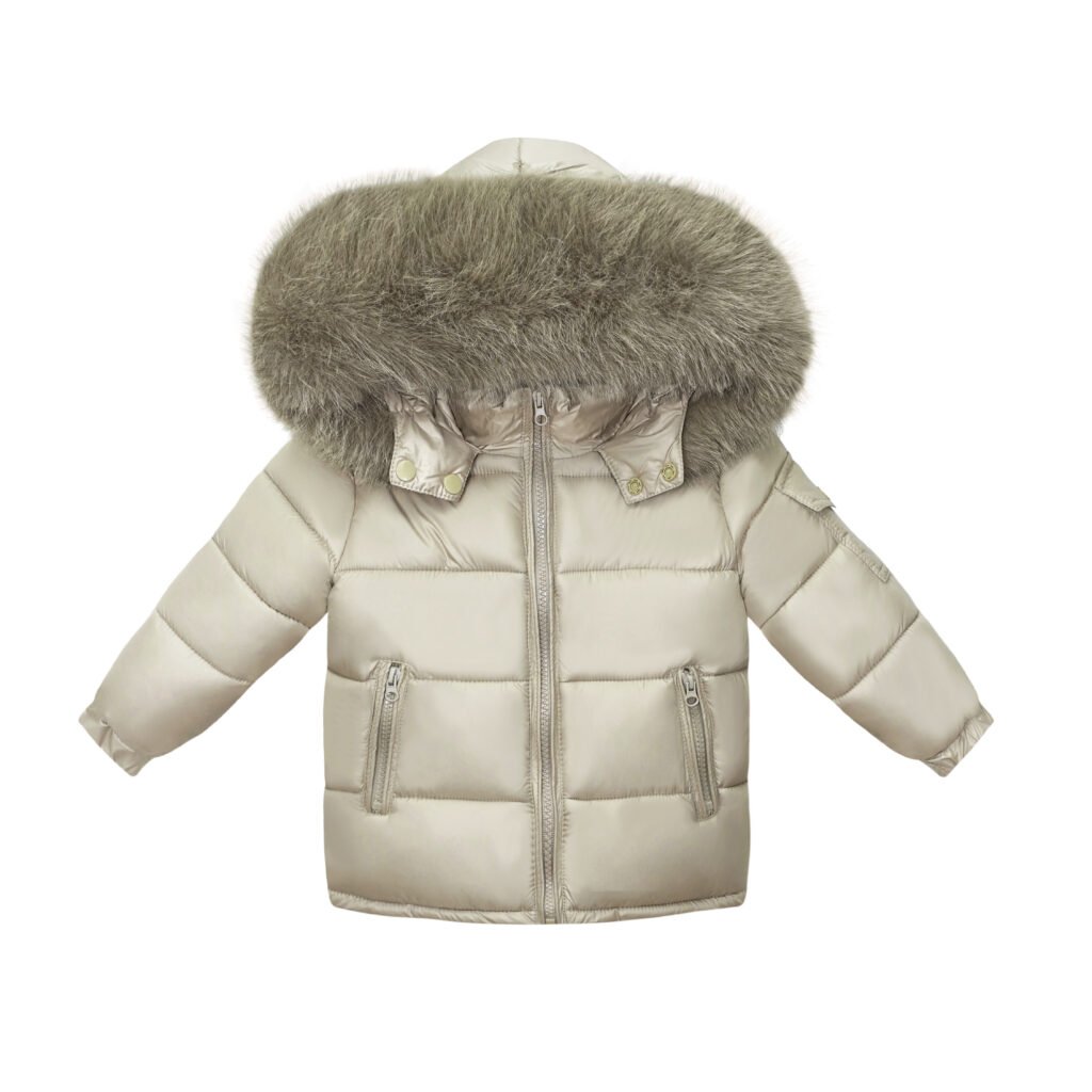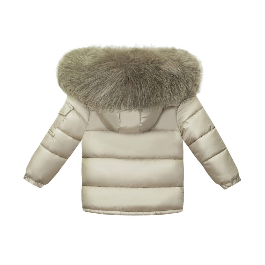 Baby Puffer Jacket with Oversized detachable Faux Fur Hood-Irish Cream
