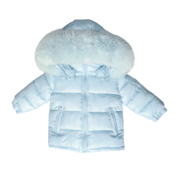 Baby Puffer Jacket with Oversized detachable Faux Fur Hood-Baby Blue