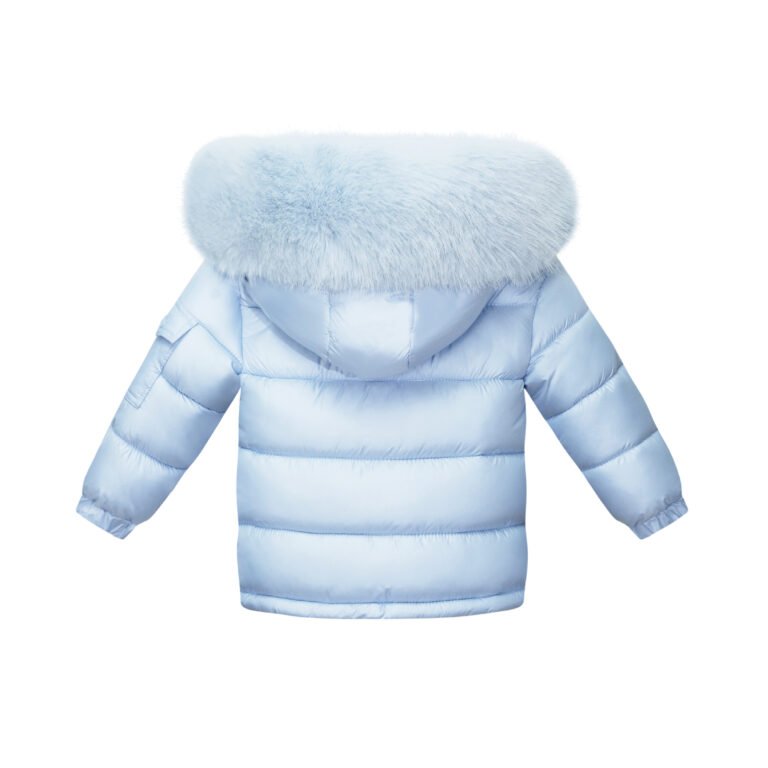 Baby Puffer Jacket with Oversized detachable Faux Fur Hood-Baby Blue