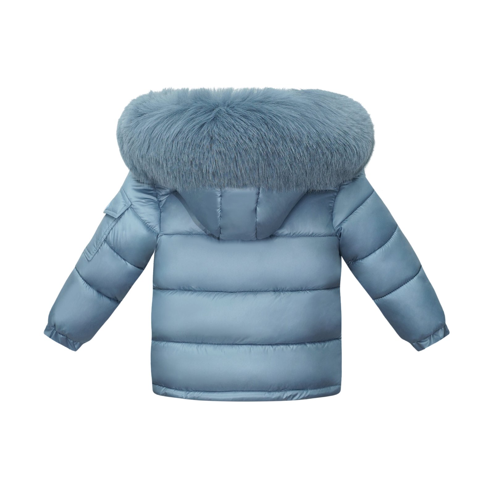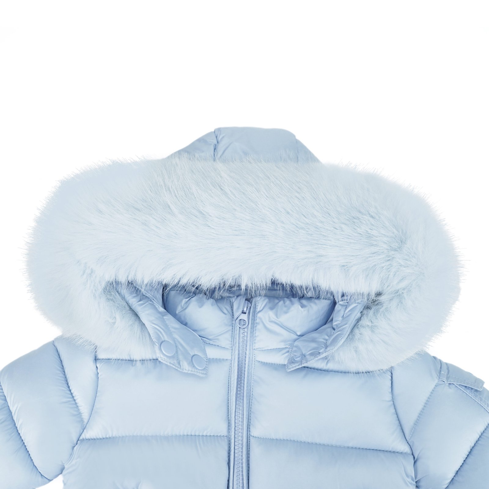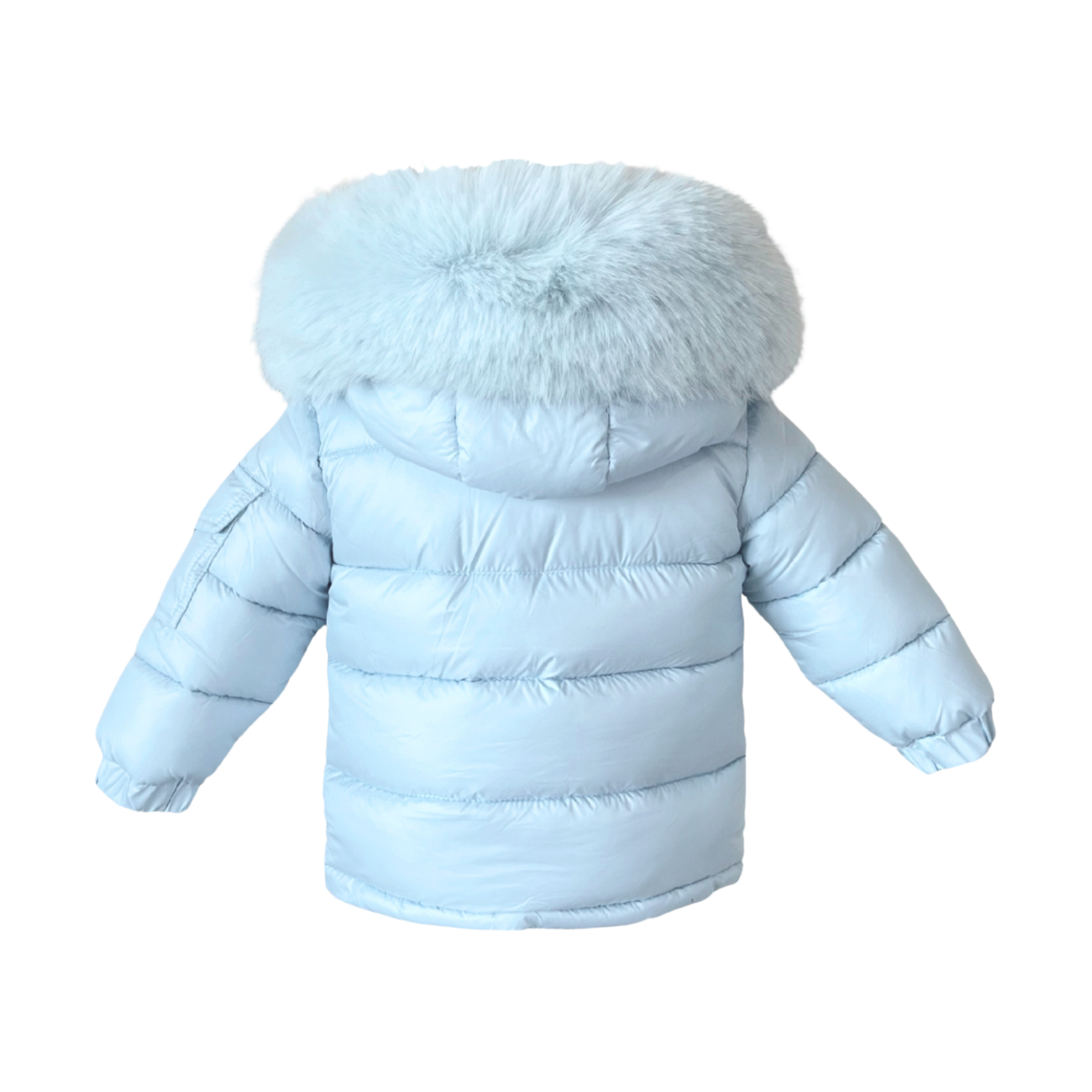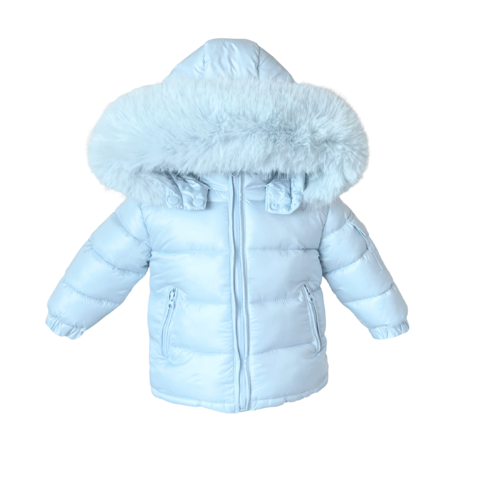 Baby Puffer Jacket with Oversized detachable Faux Fur Hood-Baby Blue