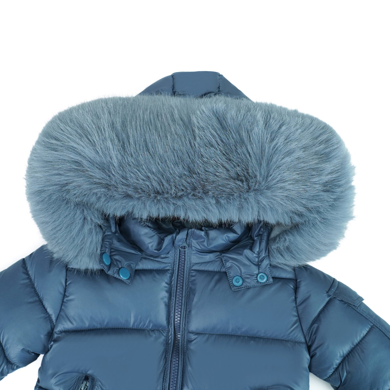 Baby Puffer Jacket with Oversized detachable Faux Fur Hood-Navy Blue
