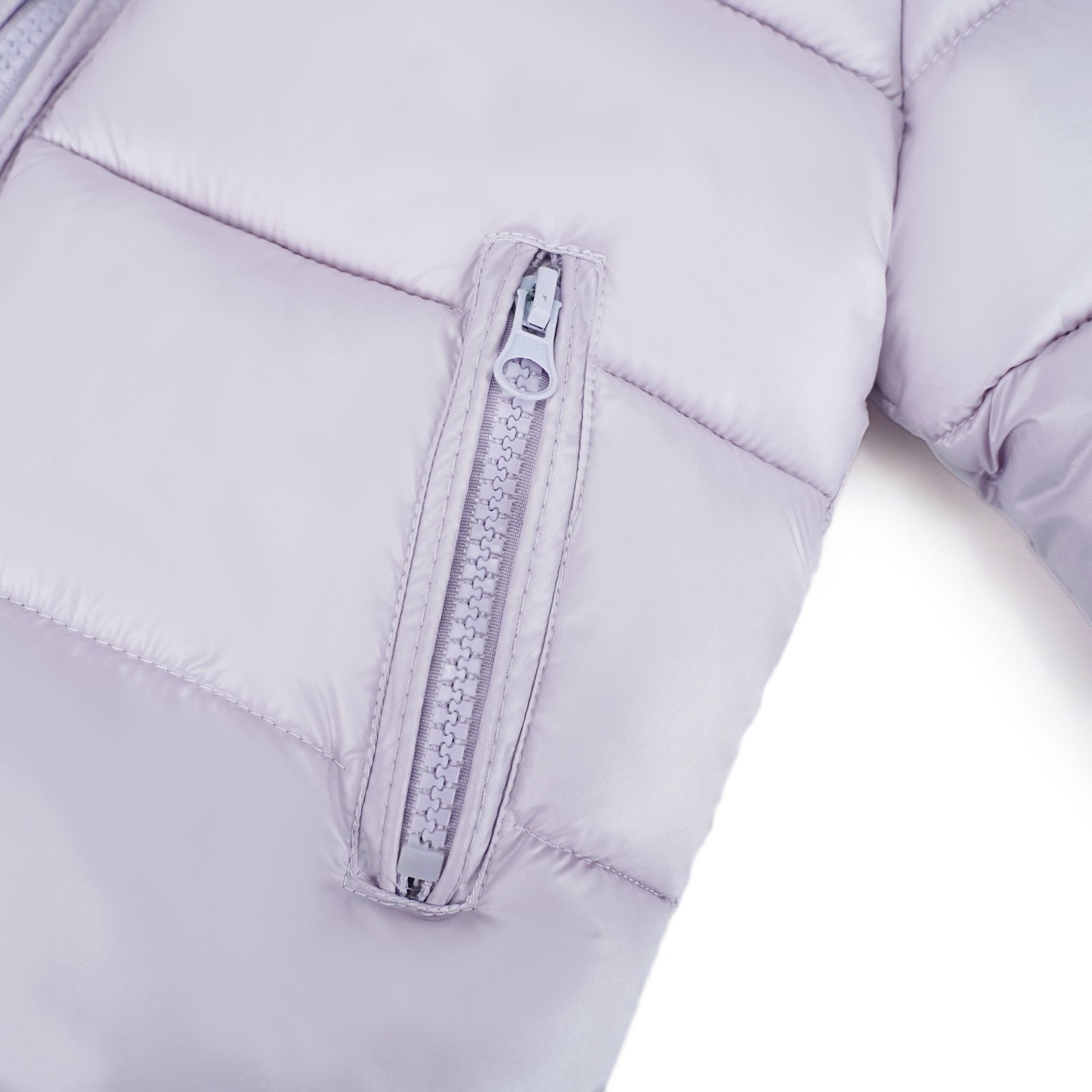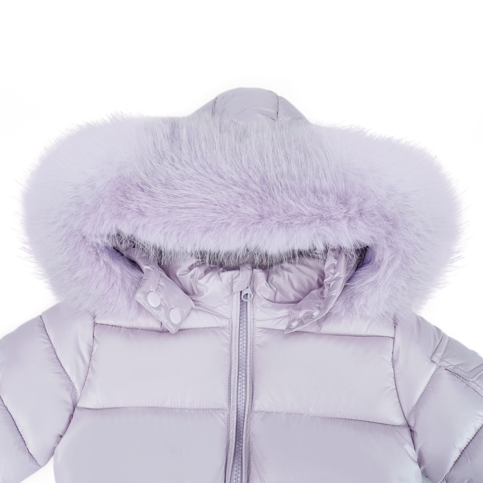 Baby Puffer Jacket with Oversized detachable Faux Fur Hood-Pastel Lilac