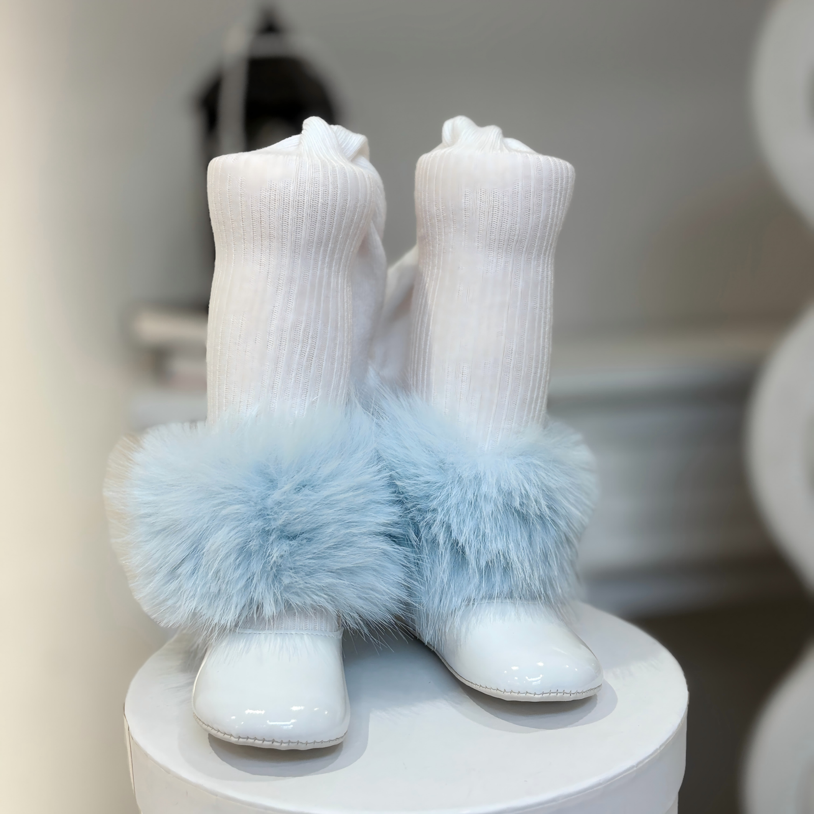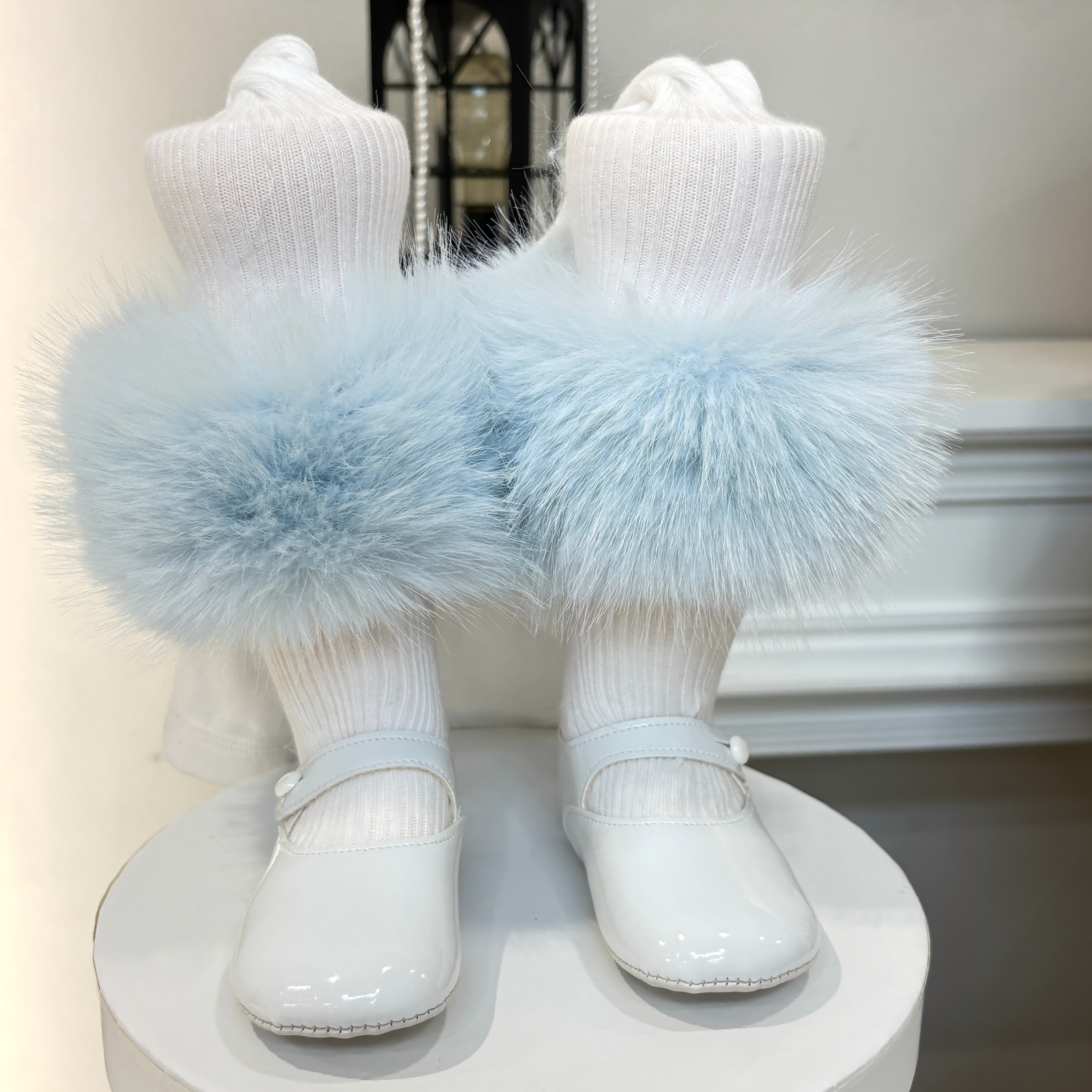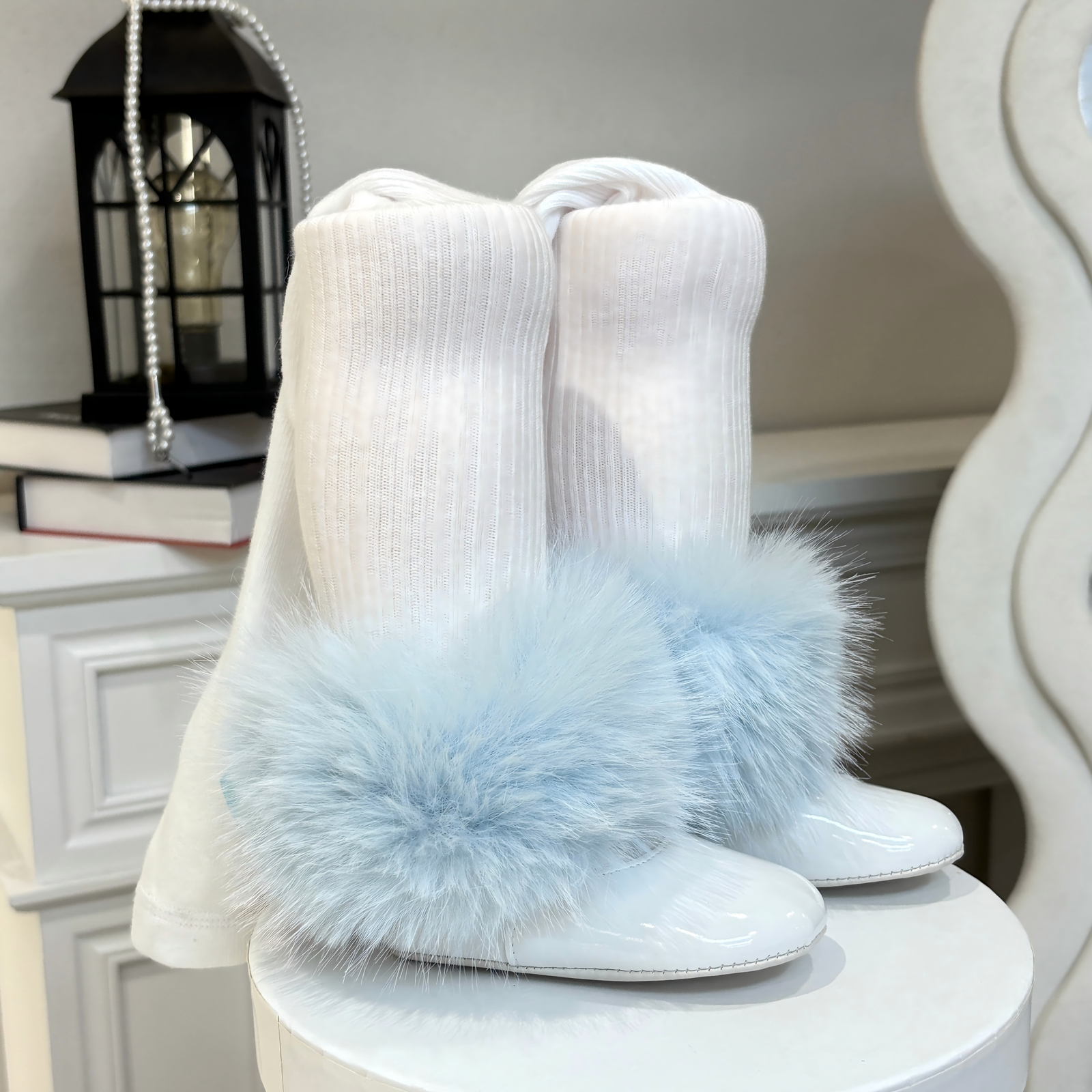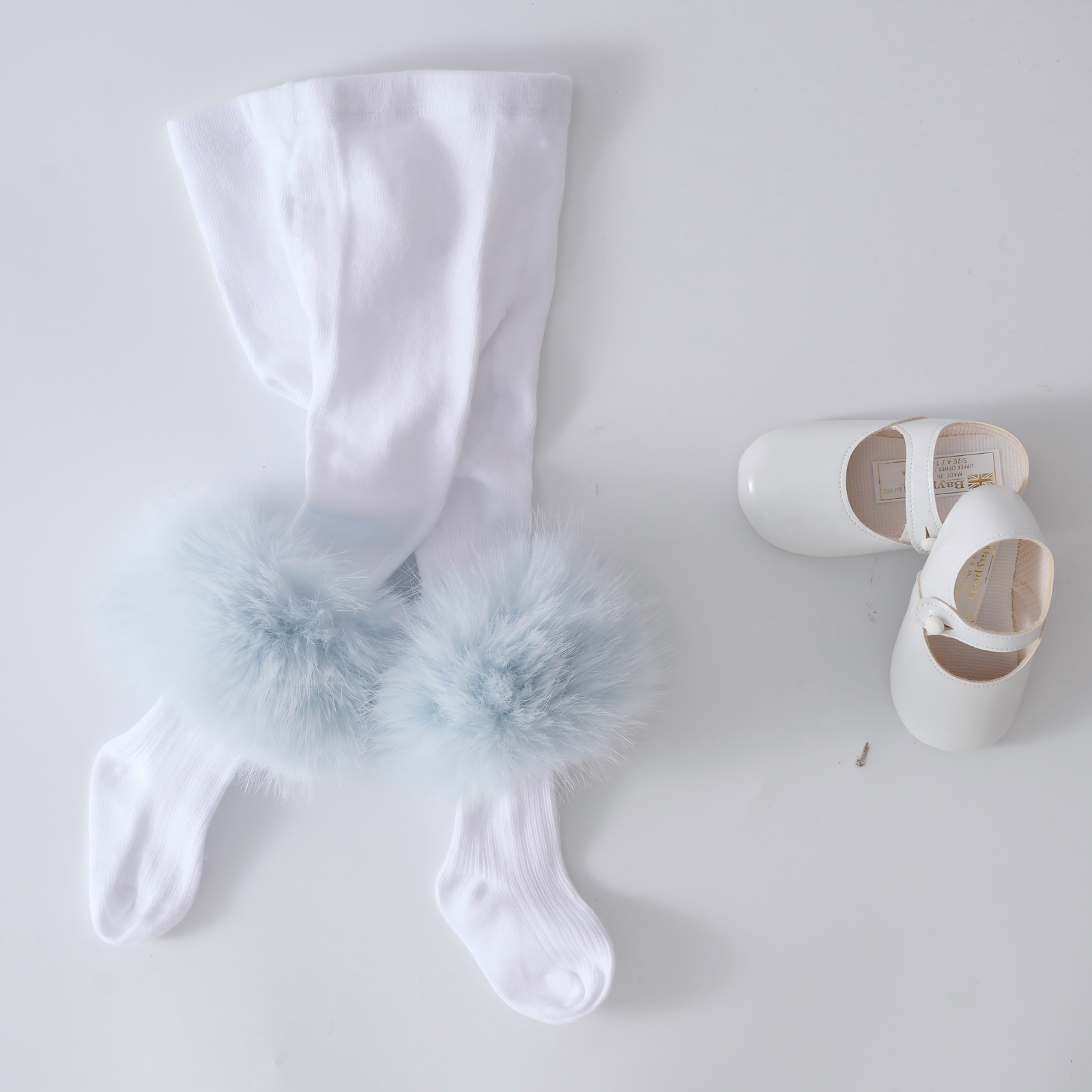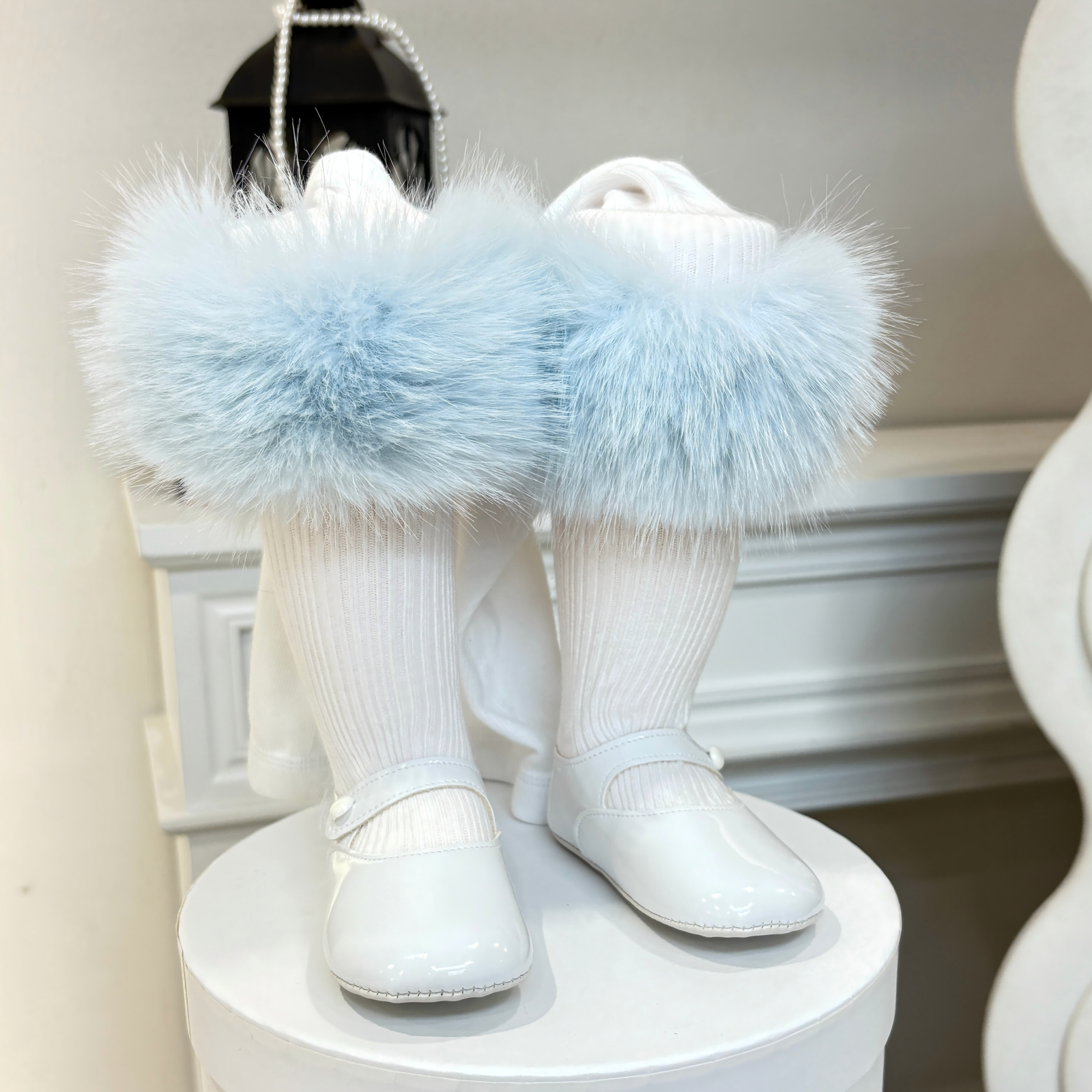 EvaBella Signature Ribbed Tights with Detachable Fur Trim– EB-9501-BabyBlue