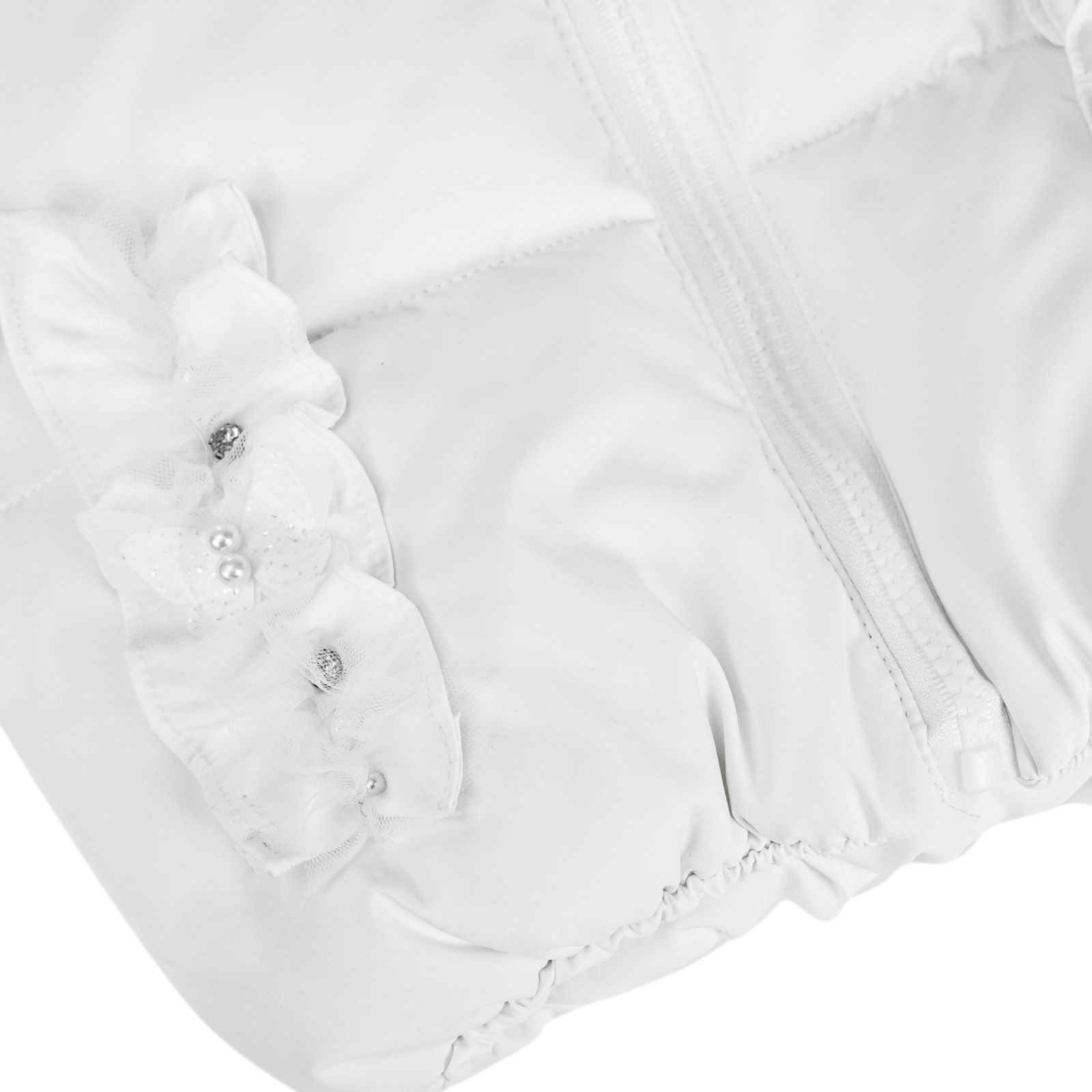 Luxury Baby Girl White Puffer Coat with Oversized Faux Fur Hood, Satin Bow & Diamanté Pocket Details – Warm Winter Jacket EvaBella EB-9702-S