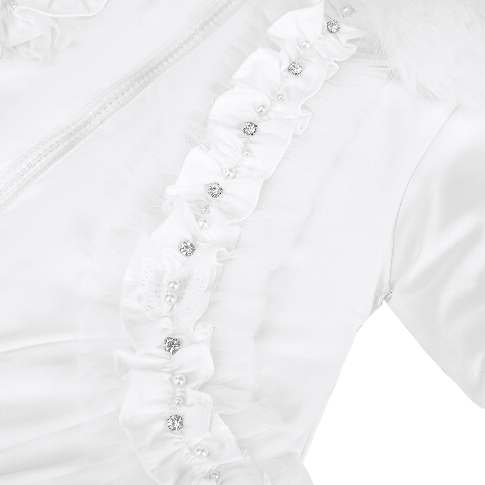 Luxury Baby Girl White Puffer Coat with Oversized Faux Fur Hood, Pearl & Diamanté Embellishments, Tulle Details, and Satin Butterfly Accents – Warm Winter Jacket EvaBella EB-9703-S