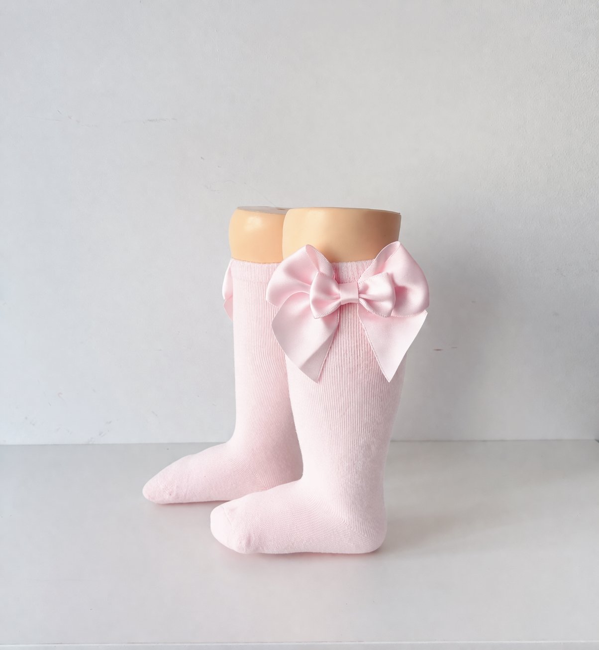 EvaBella Baby Pink Double Satin Bow Knee-High Socks-OEKO-TEX® Standard 100 Certified-EB-9506 Baby Pink