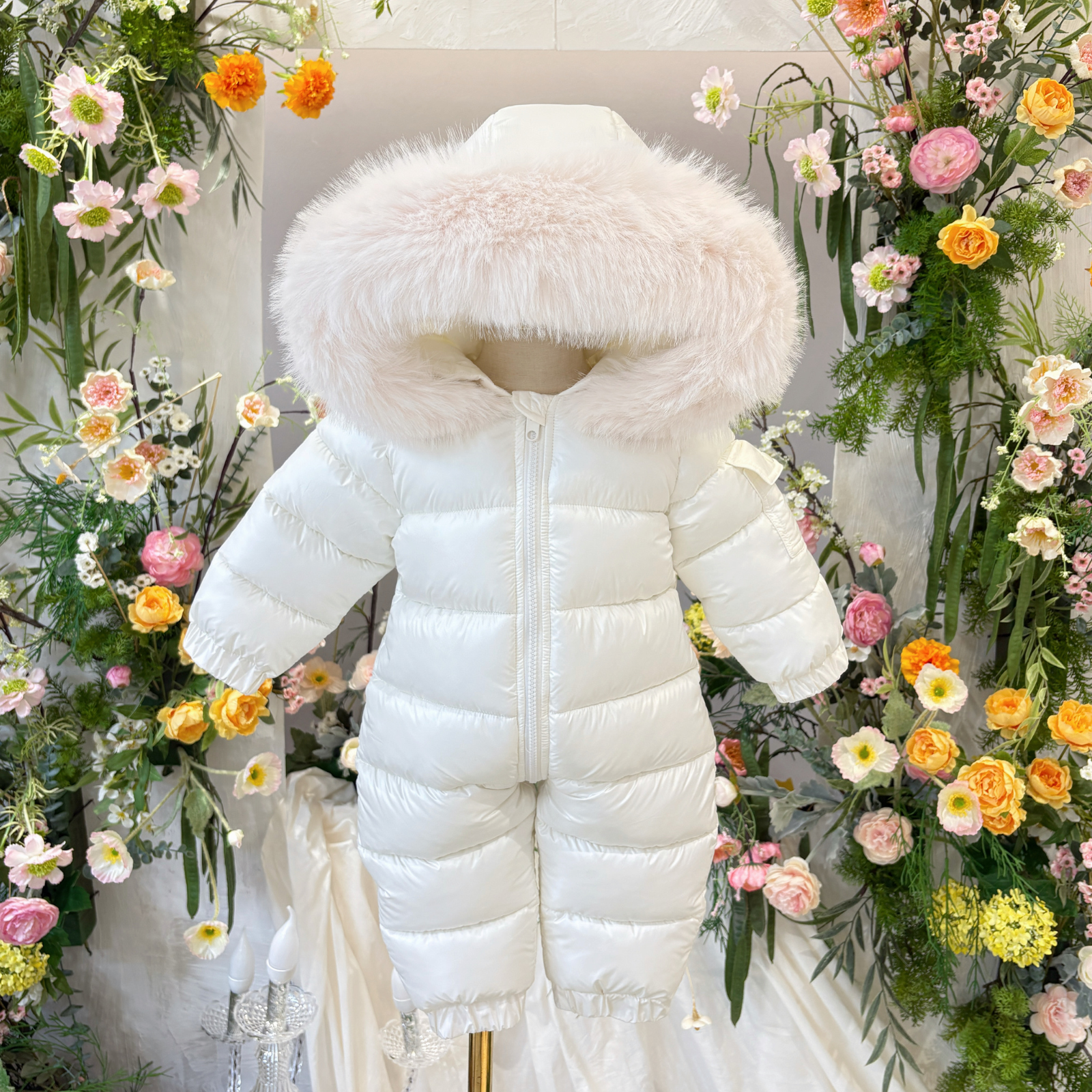 Wrapped in a serene shade of Cream, this piece features our iconic oversized faux fur hood — luxuriously soft, generously proportioned, and detachable for ease of care. The cosy silhouette is perfectly puffed for insulation, while the windproof shell keeps your little one snug during every chilly adventure.