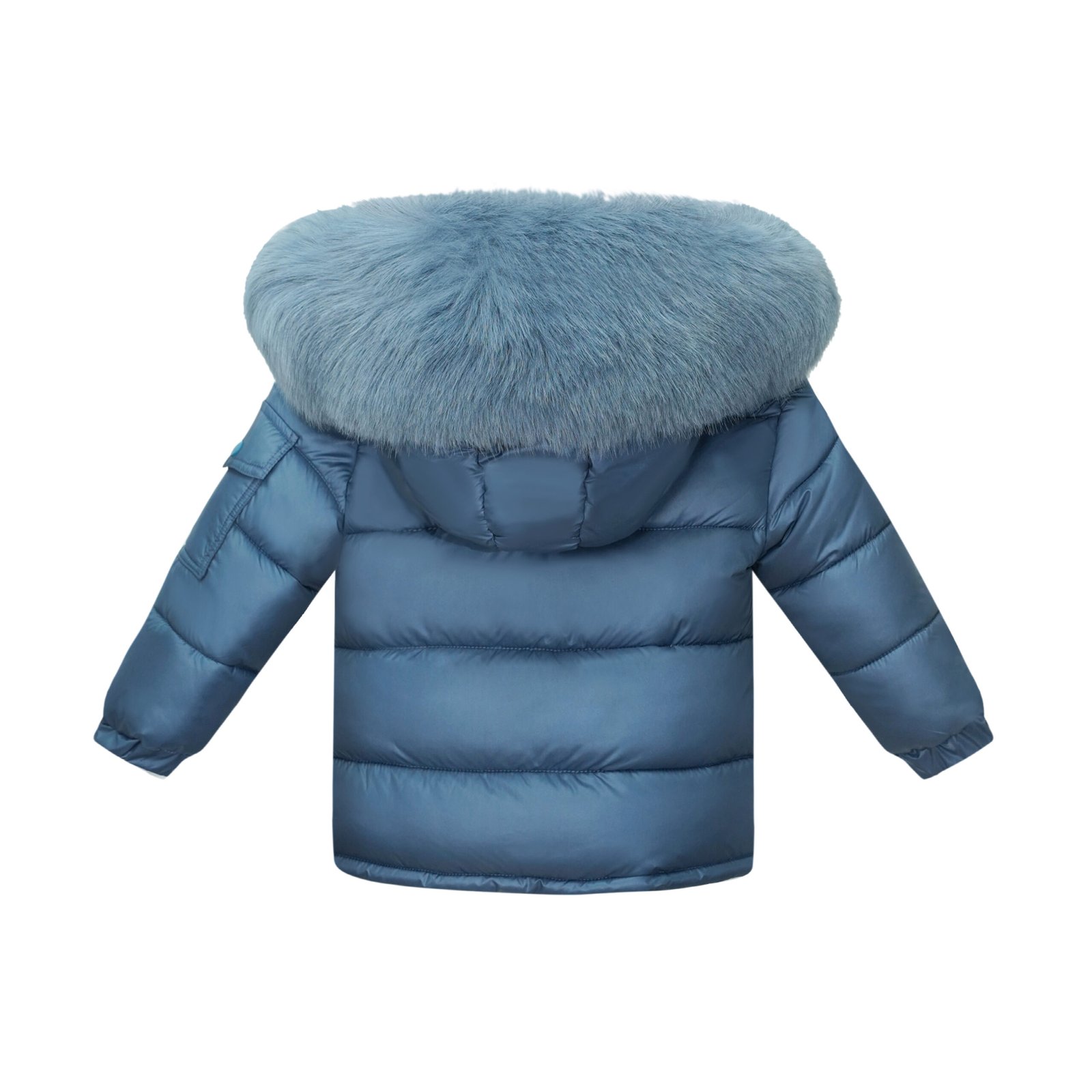 Kids Puffer Jacket with Oversized detachable Faux Fur Hood-BabyBlue