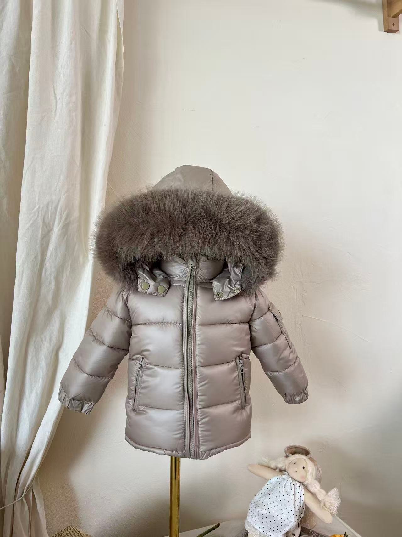 Crafted with a smooth, soft-touch fabric and filled with plush insulation, it keeps your kids cozy and snug without adding bulk. The detachable signature faux fur hood adds a touch of elegance while offering extra protection against the wind and cold. The fur trim can be easily removed for a more casual look or milder days.