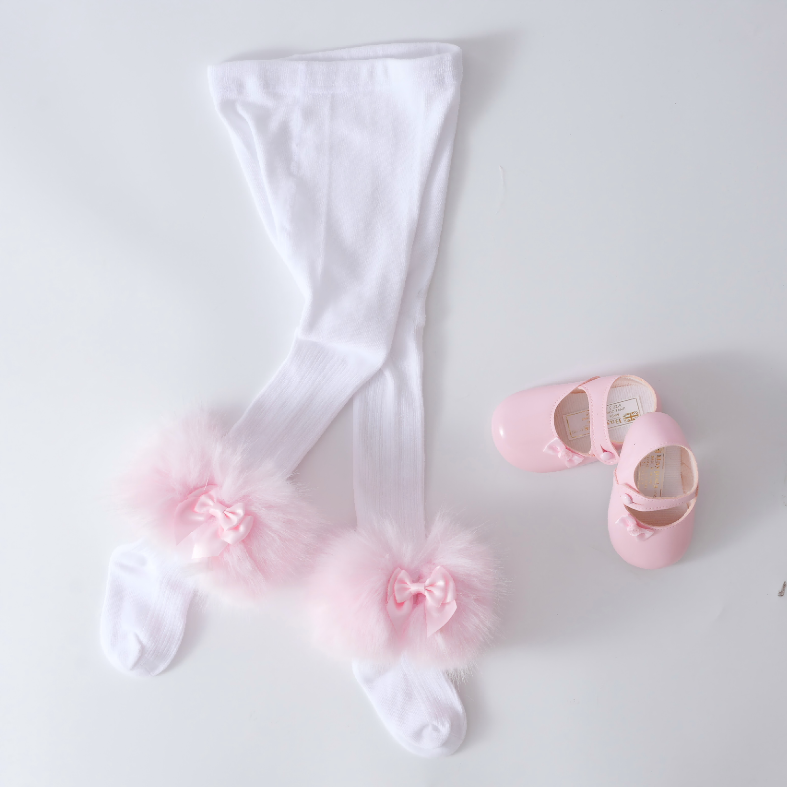 | EvaBella Winter Ribbed Tights with Detachable Fur Trim– EB-9501-BabyPink | Made from organic brushed cottonand OEKO-TEX® 100 certified Yans