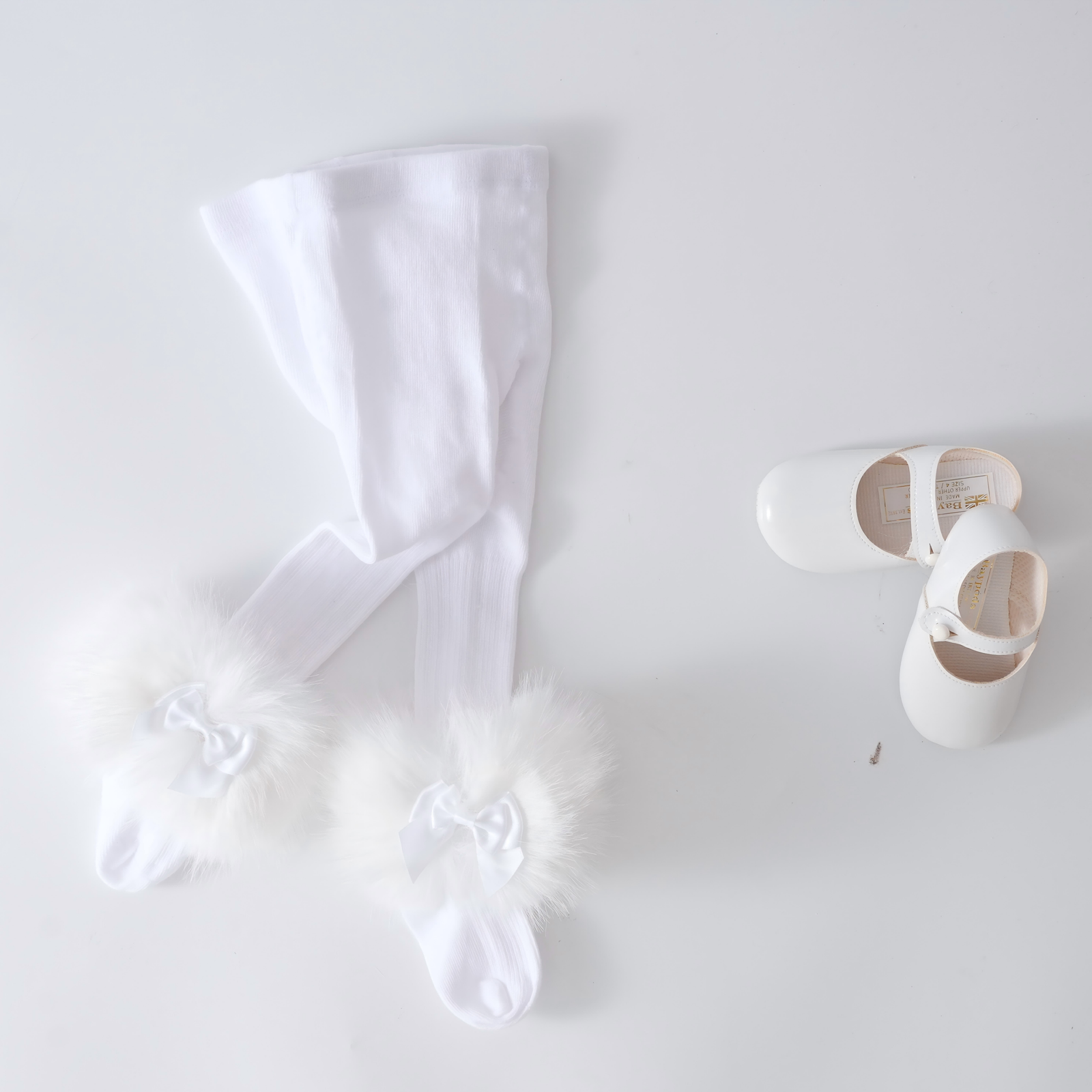 | EvaBella Signature Ribbed Tights with Detachable Fur Trim– EB-9501-White | Made from organic brushed cottonand OEKO-TEX® 100 certified Yans