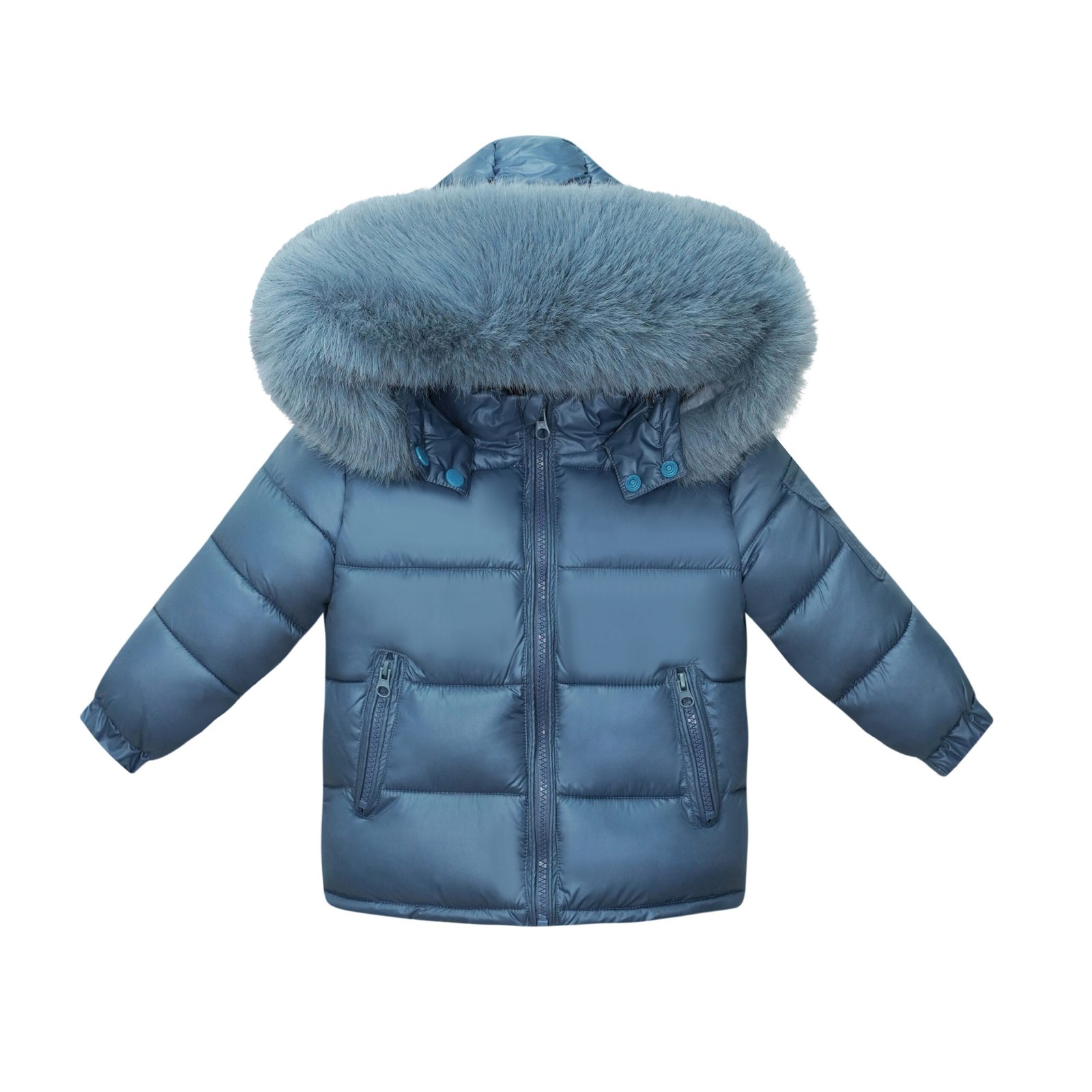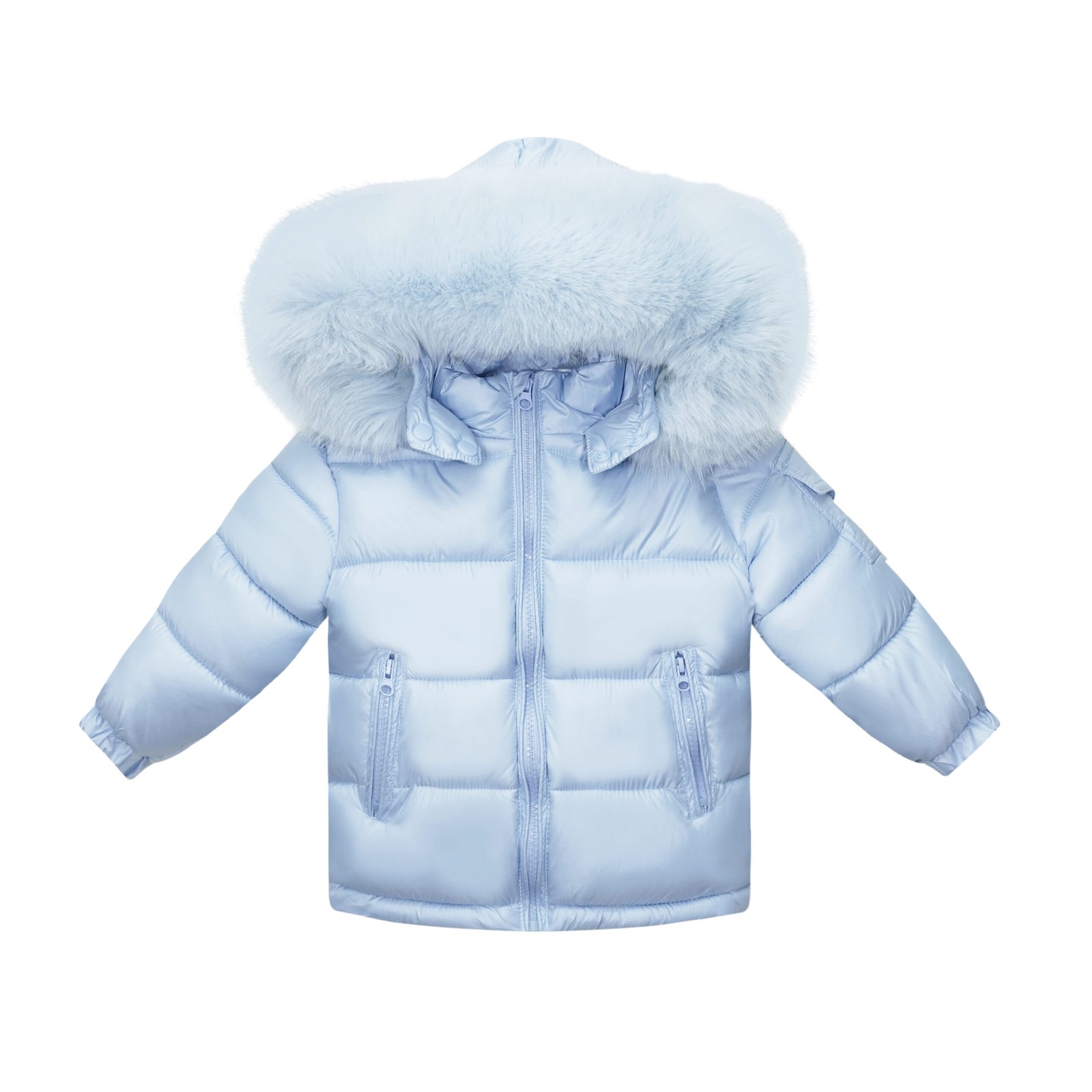 | Kids Puffer Jacket with Oversized detachable Faux Fur Hood-BabyBlue | Lightweight construction for unrestricted movement and all-day comfort